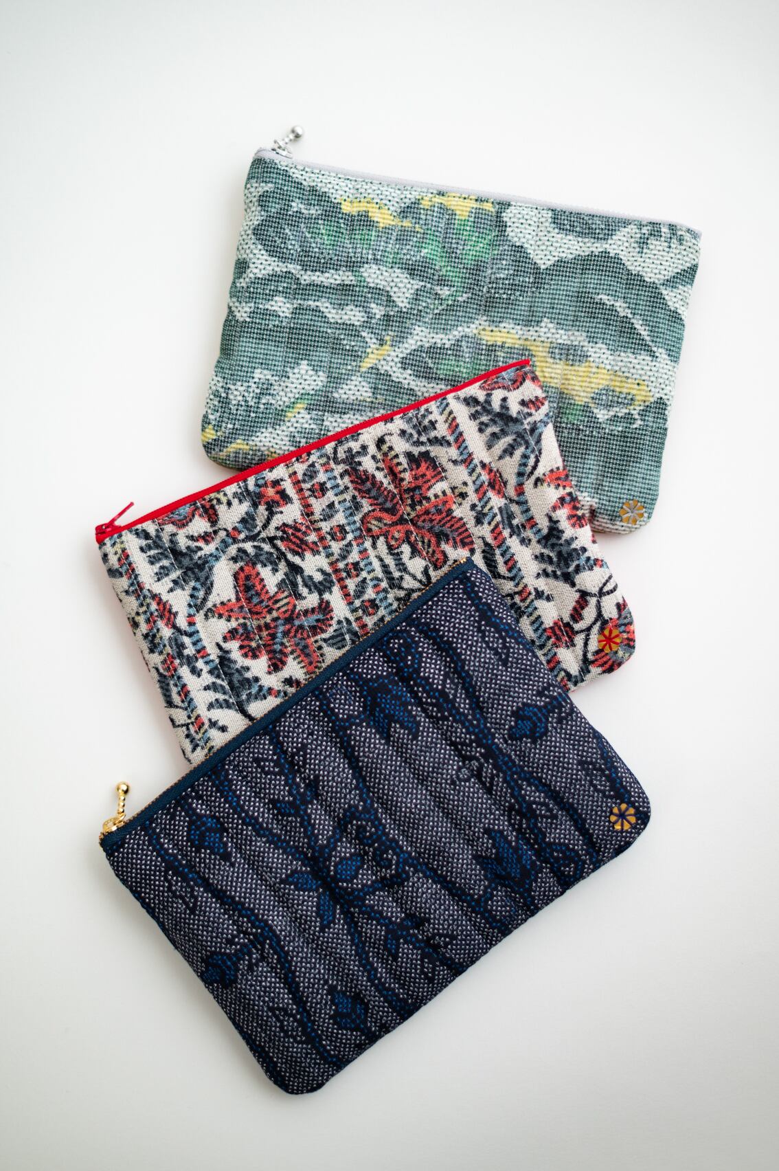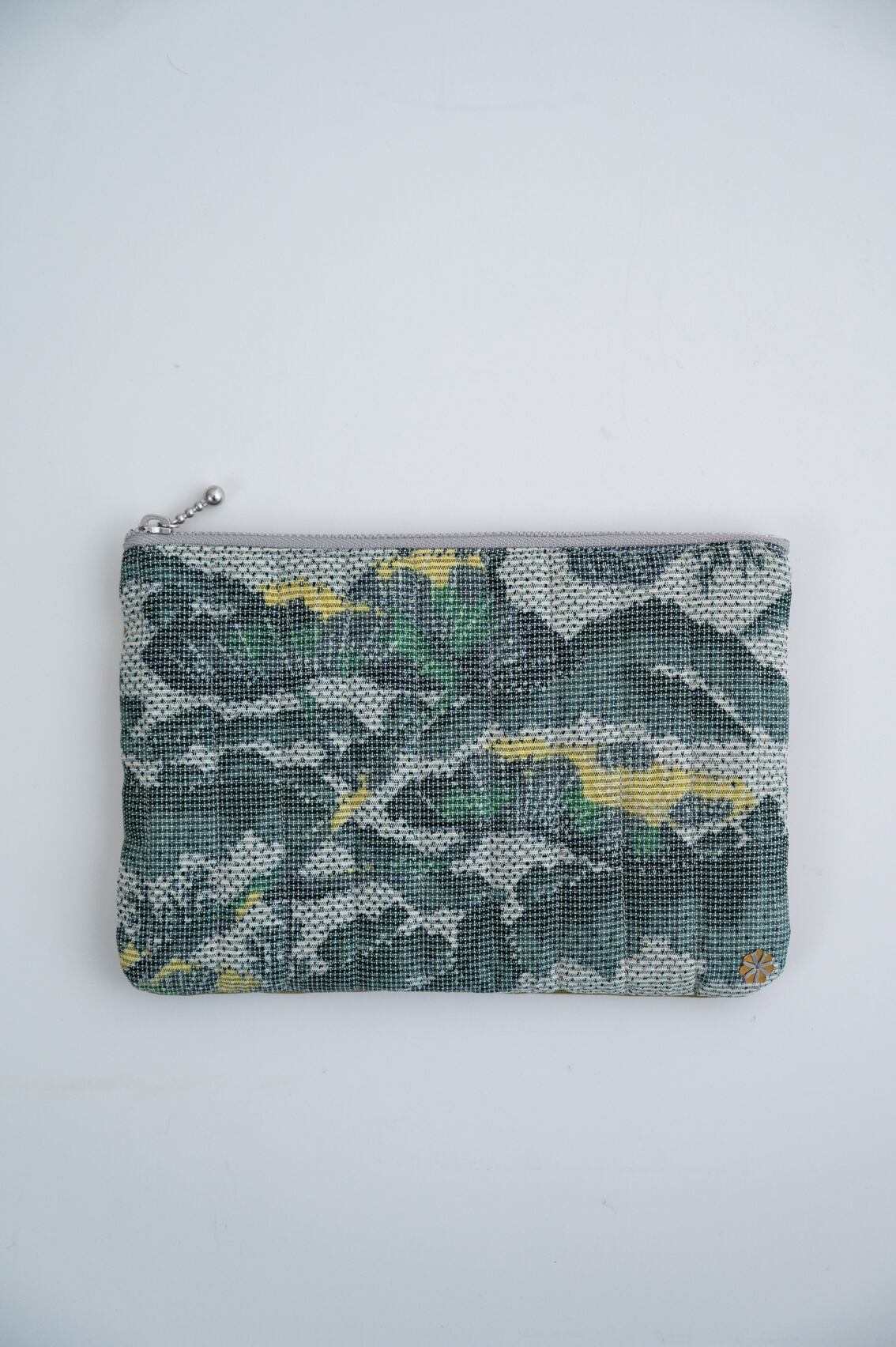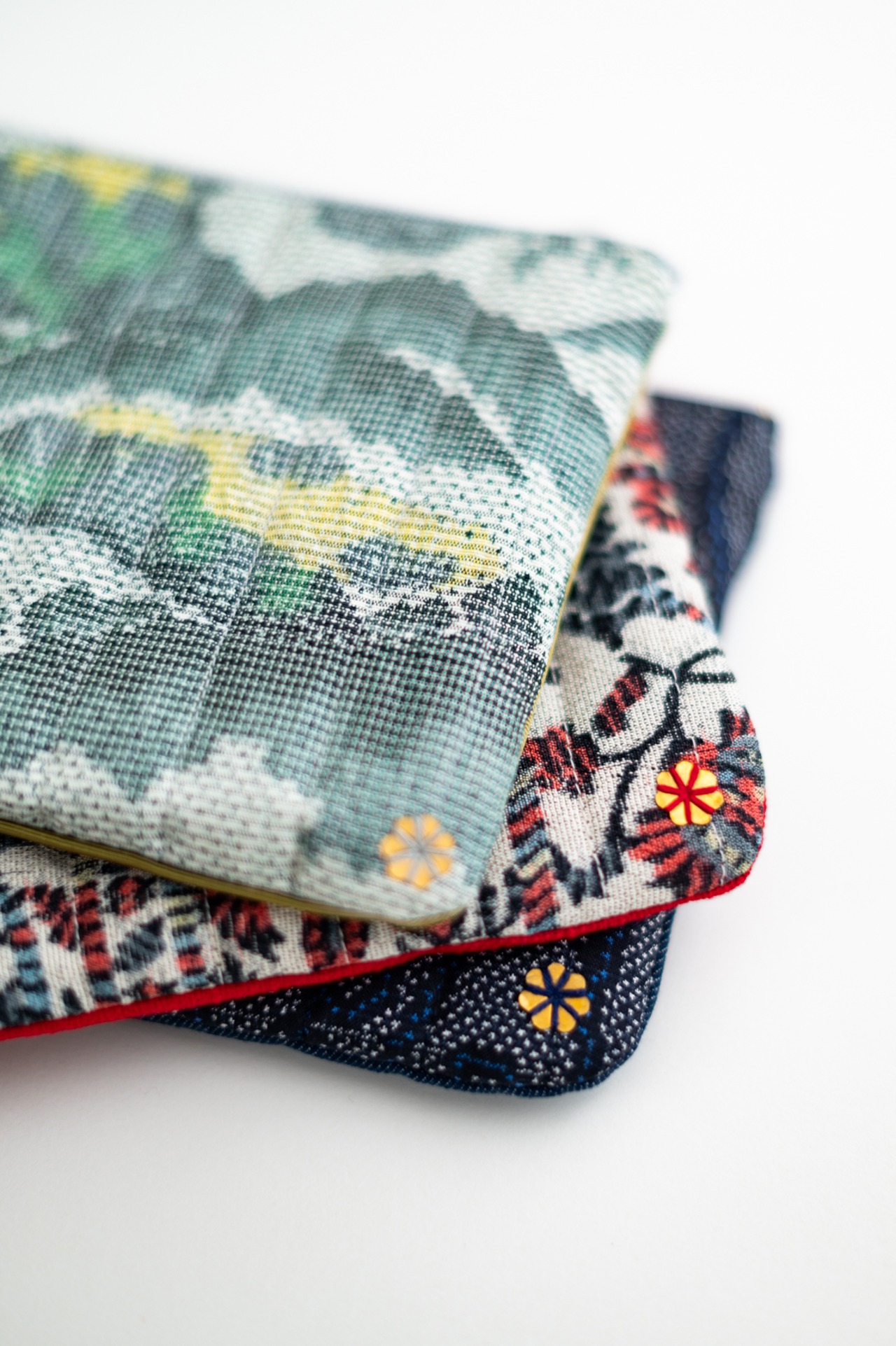 着物をキルト加工したマルチポーチです。お薬手帳とカード3枚入ります。通帳と印鑑入れにしてもいいですね。お好みの使い方で。