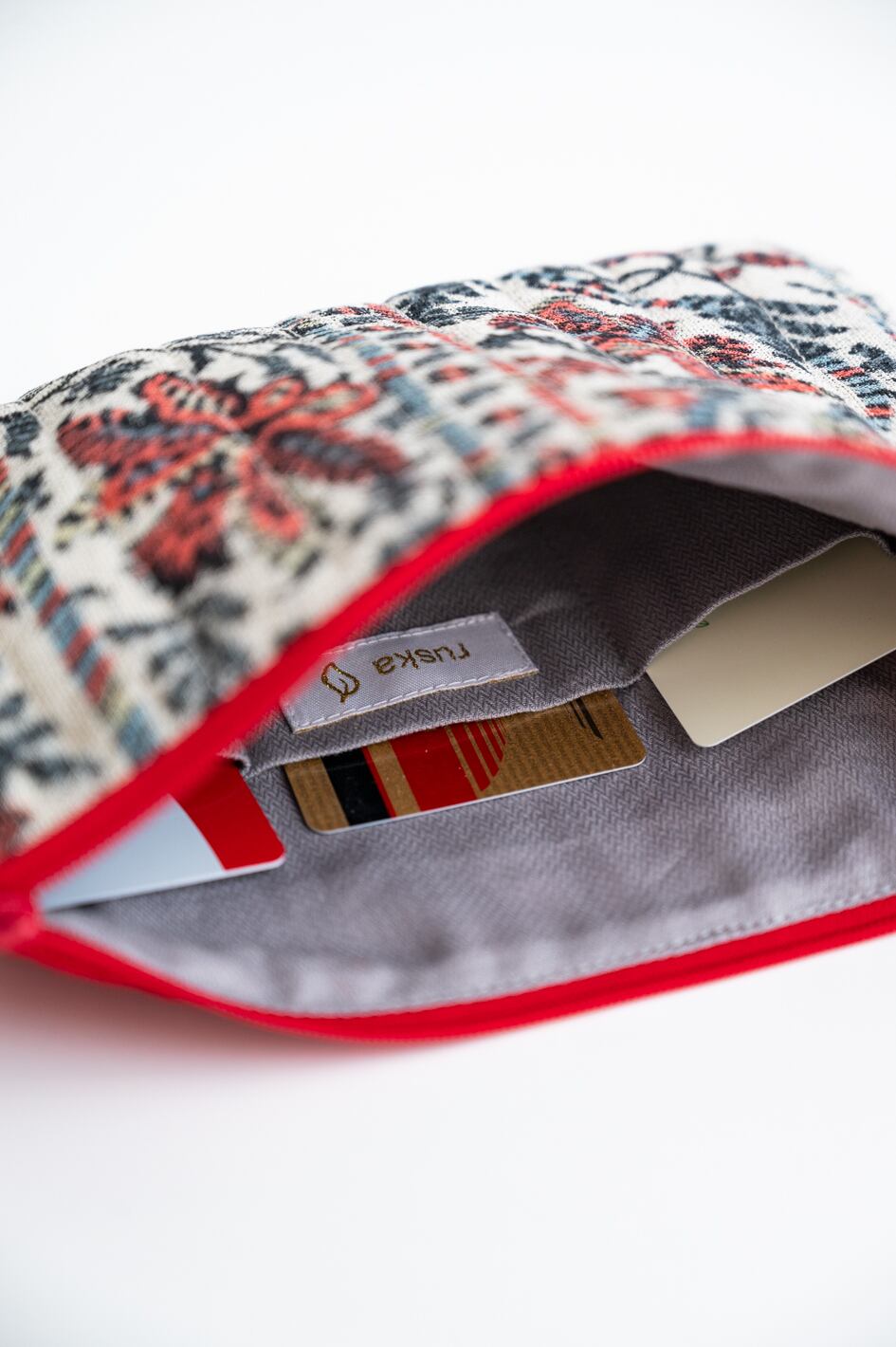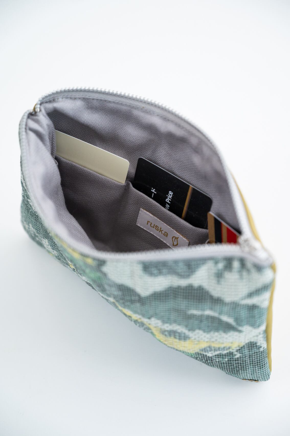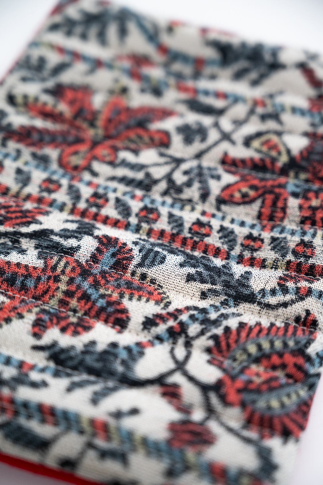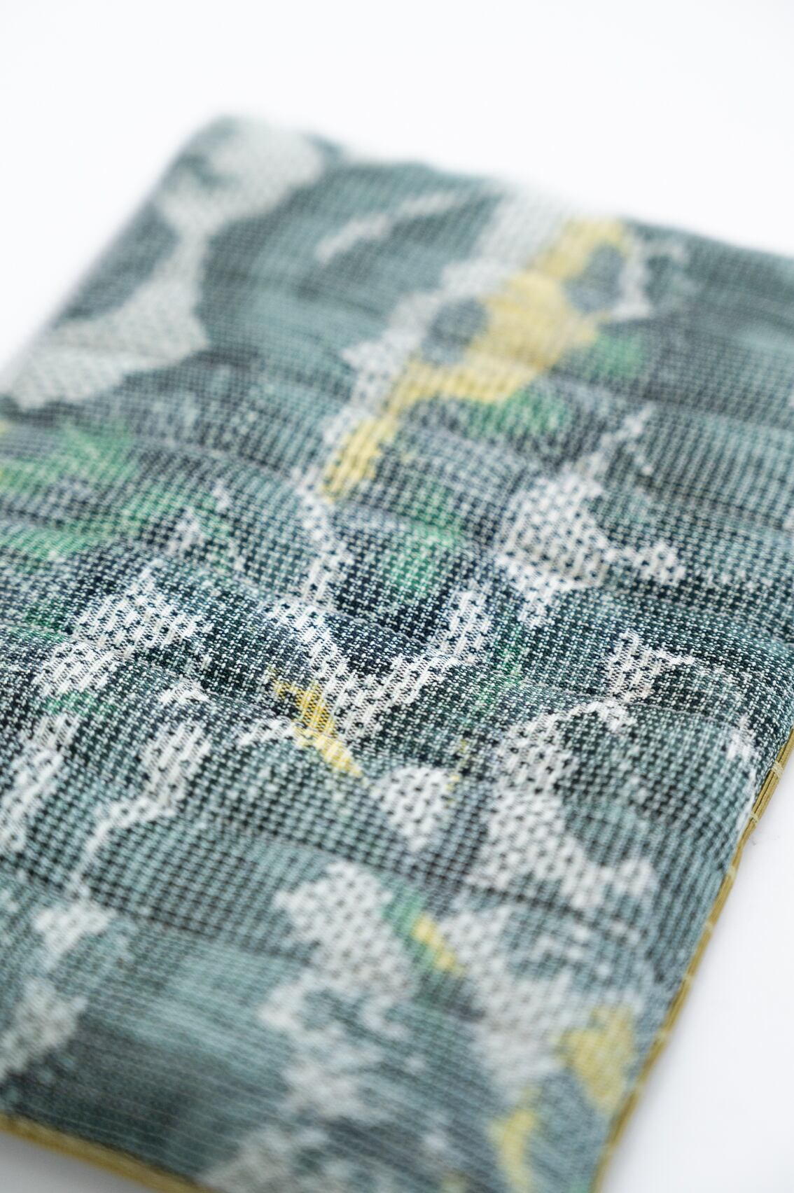 着物をキルト加工したマルチポーチです。お薬手帳とカード3枚入ります。通帳と印鑑入れにしてもいいですね。お好みの使い方で。
